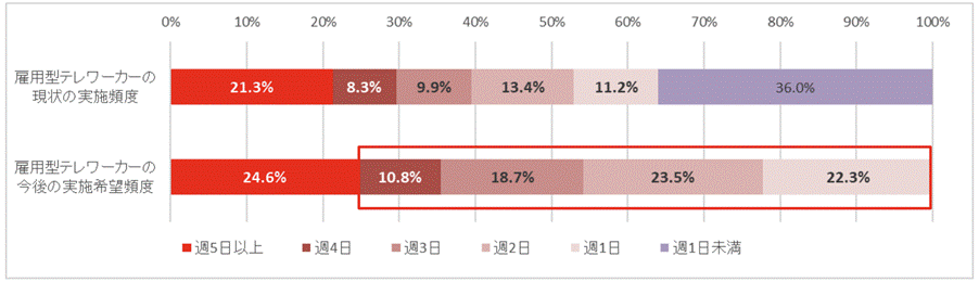 半数以上が「週3日以上」のリモートワークを望んでいるといことから、たまに在宅ではなく、ほぼ在宅が主流の働き方として求められていることがわかります。