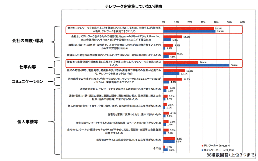 国土交通省の調査「令和5年度テレワーク人口実態調査」でも、テレワークを実施しない理由の一つとして「職場にいないと、疎外感・孤独感を感じる」という点が挙げられています。