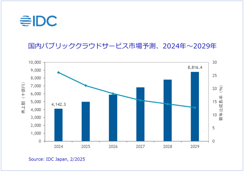 国内のクラウド市場は急速な拡大を続けており、機械学習の開発もクラウド環境を前提とした設計が標準になっています。IDC Japanの調査によれば、2024年から2029年までの年間平均成長率(CAGR)も高い予測が出ており、需要は今後も伸び続けるでしょう。